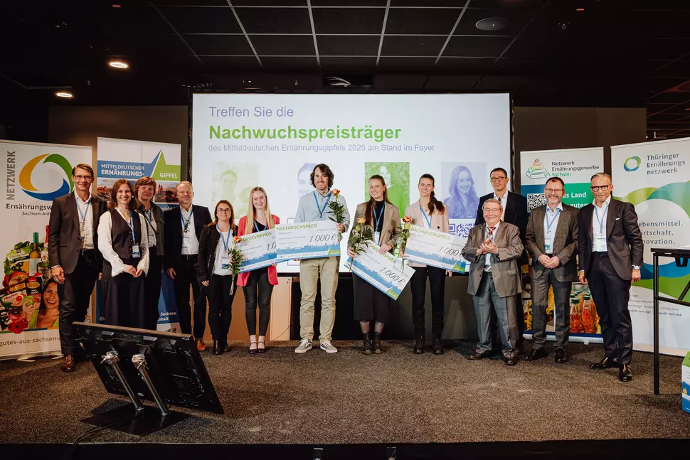 Im Rahmen des Nachwuchsforums des 9. Mitteldeutschen Ernährungsgipfels in Dresden wurden am Mittwoch vor 200 Branchenvertretern aus Sachsen, Thüringen und Sachsen-Anhalt vier beispielgebende und zukunftsweisende Abschlussarbeiten für die Lebensmittelbranche mit dem Nachwuchspreis ausgezeichnet.